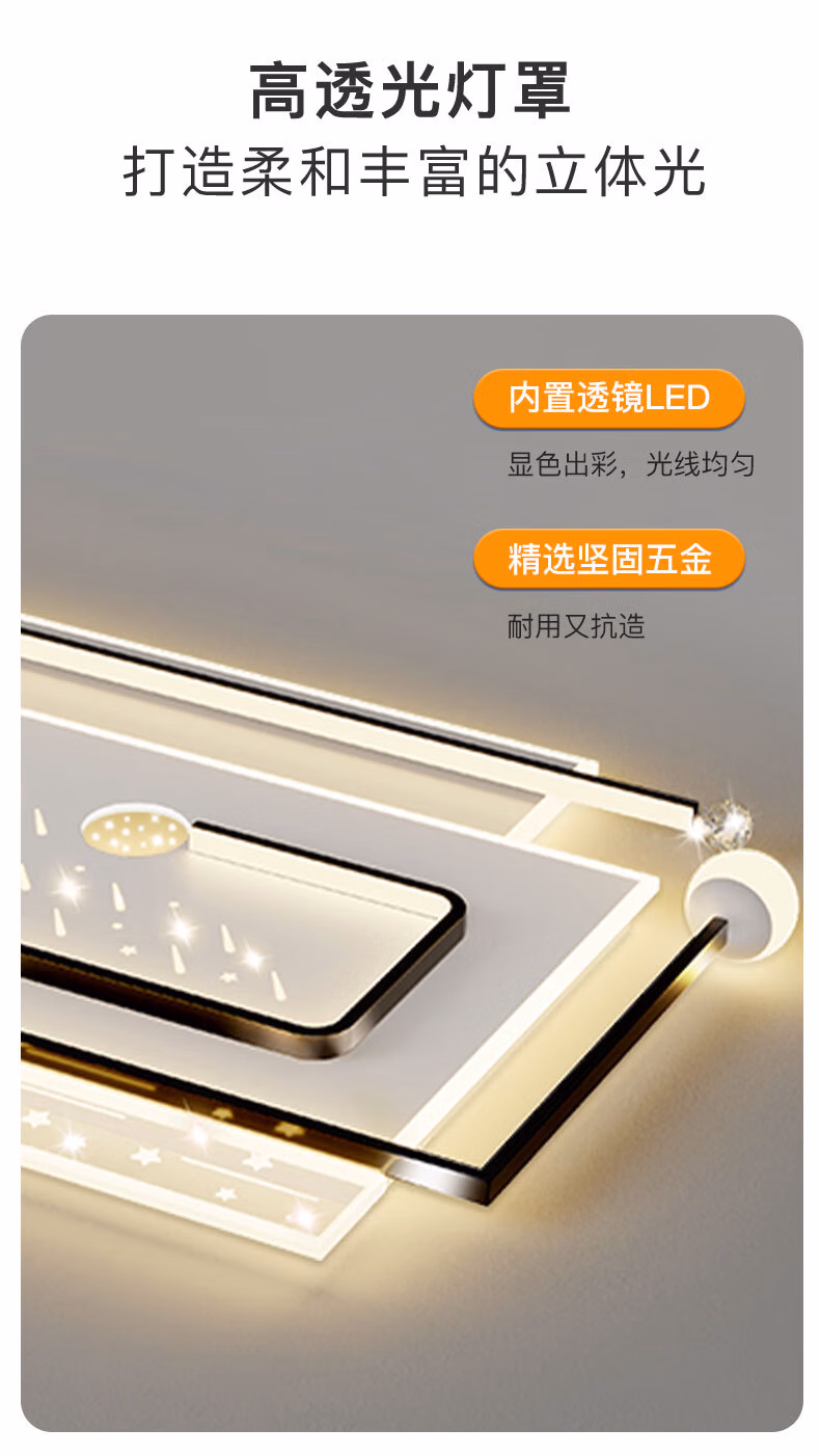 四季沐歌(MICOE)广东中山客厅灯简约大气吸顶灯全屋套餐灯具大全2025年新款星皓3 全光谱三室两厅大客厅套餐9 三色