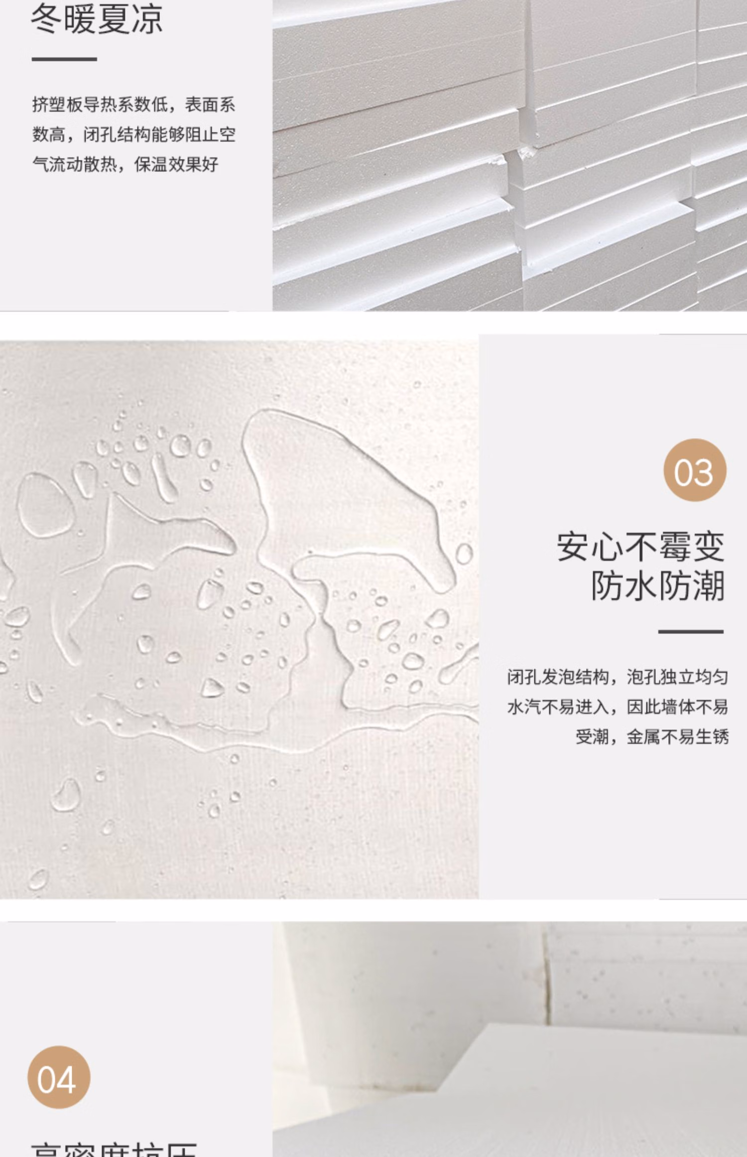 工途(Gongtu)国标xps挤塑隔热板高密度B1级阻燃地暖冷库保温板外墙屋顶泡沫板 高密度白晶板-120*60厚2cm