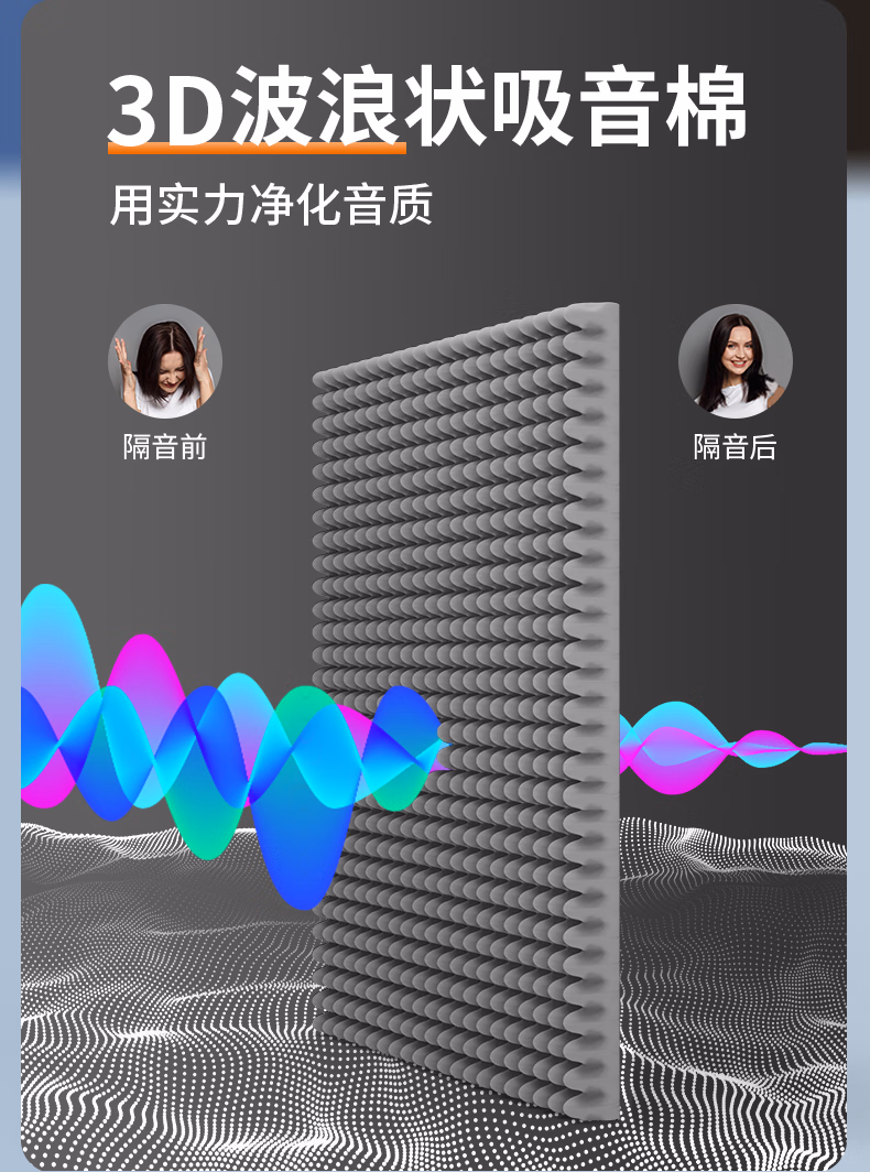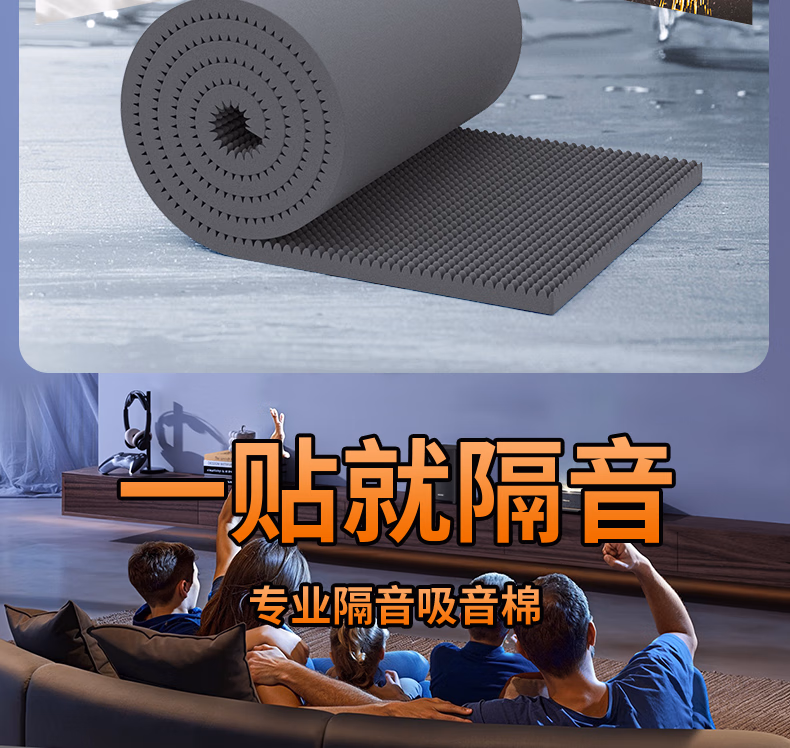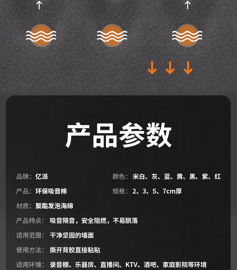 亿派吸音棉墙体自粘 消音棉海绵室内隔音墙客厅KTV隔音棉 灰色1平方【2cm厚】