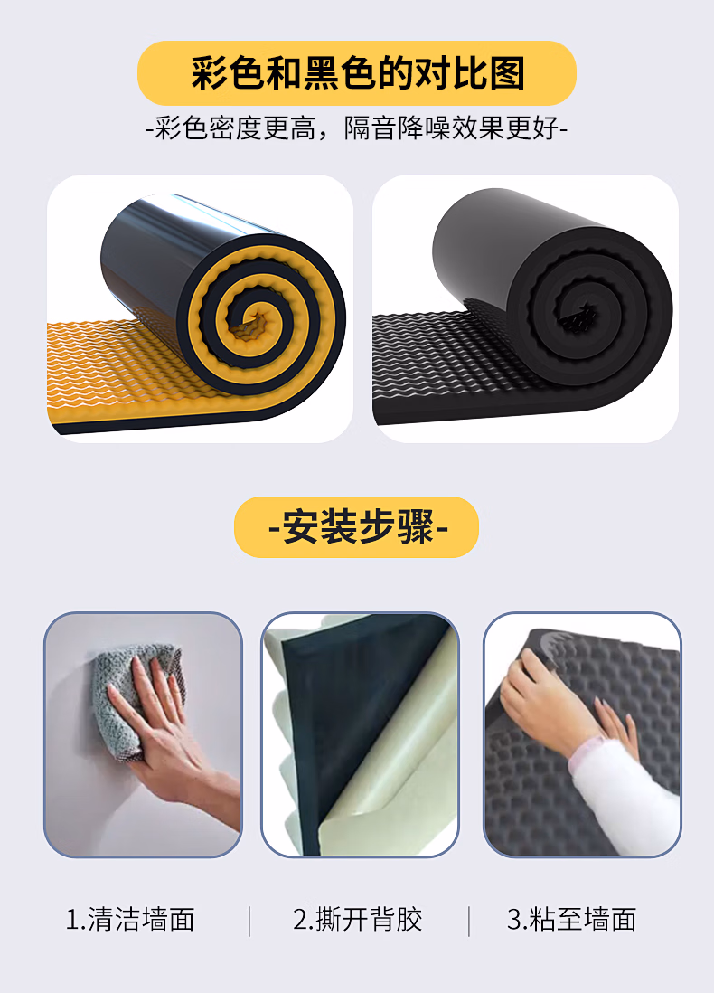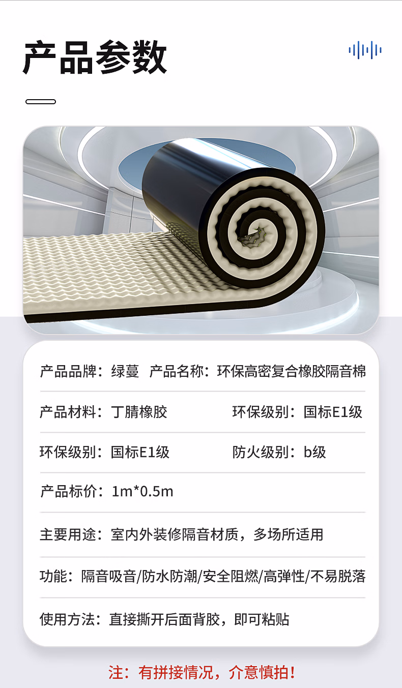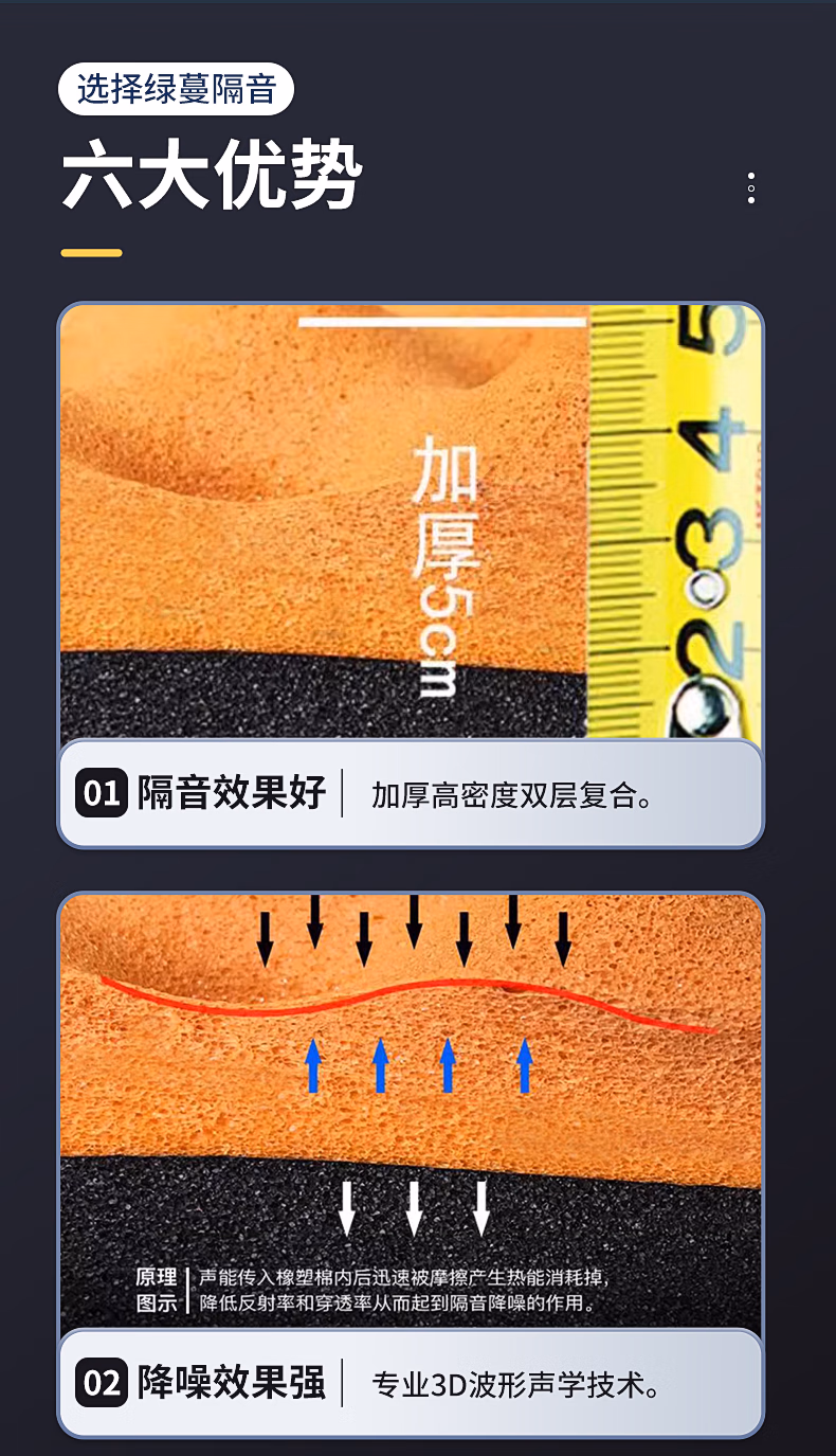 绿蔓隔音棉吸音棉超强消音棉自粘隔音板卧室家用墙体墙贴门贴橡胶材料 黑色【足厚】2厘米凹凸自粘0.5㎡