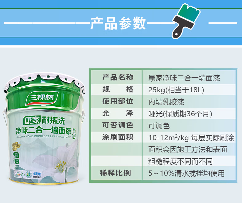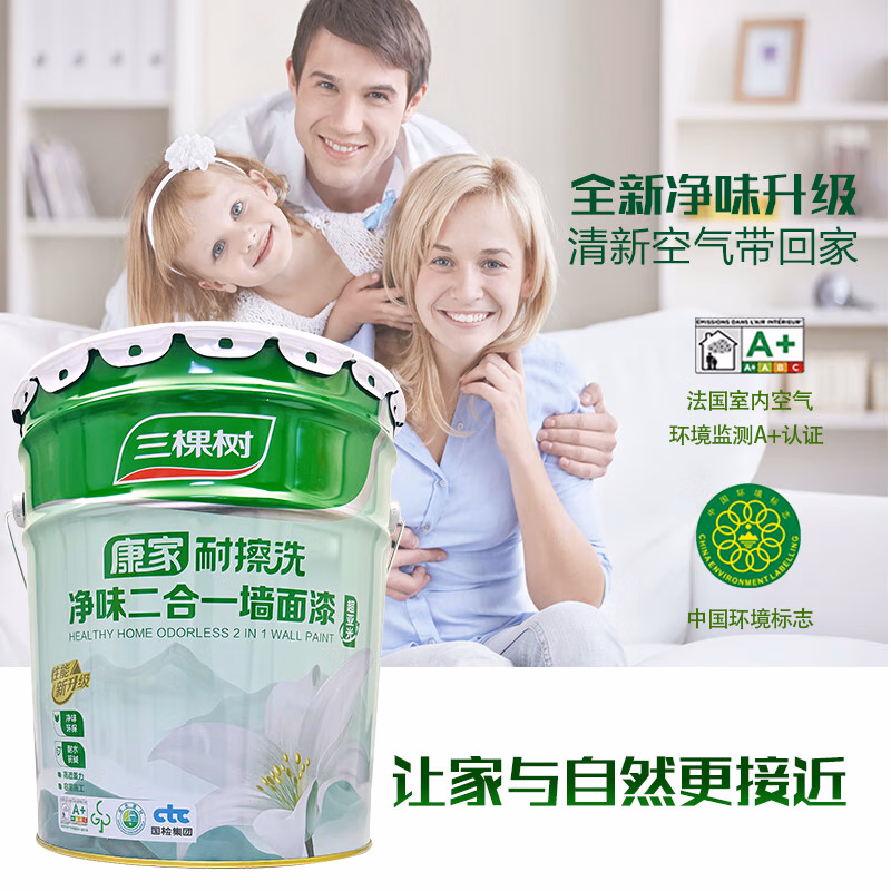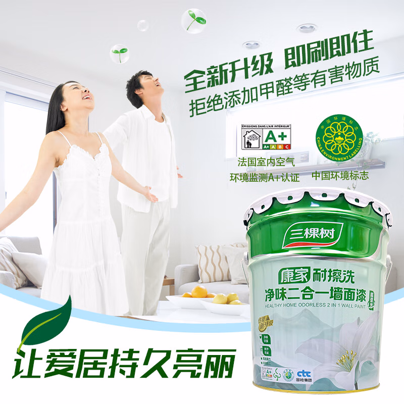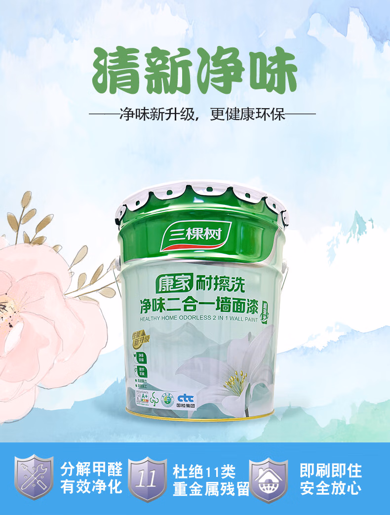 三棵树漆康家净味二合一耐擦洗内墙乳胶漆内墙面漆室内白色自刷环保漆25kg 7kg【白色面漆】